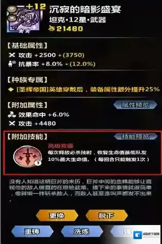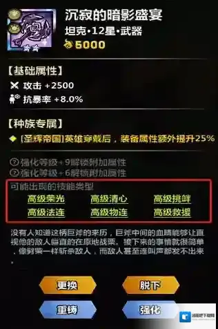 2、装备技能在装备强化至+12后会在以下装备技能中随机获得1个