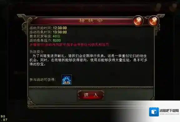 ③每日活动:每日中午12:30到1:30开始的猪洞活动,击杀猪王或猪皇可获得大量的猪肉,使用猪肉可获得大量经验奖励。