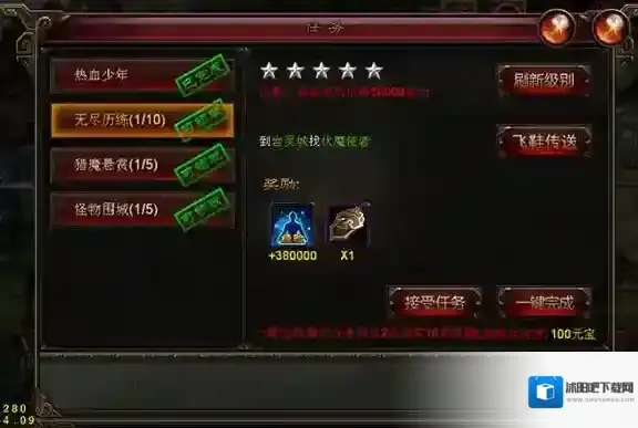 ②每日任务:前期后期主要经验获得之一,此类任务出现的环数略多,还能获得丰富的经验和绑定元宝