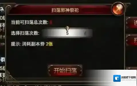 如图所示:副本界面有个扫荡按钮,选择需要完成的次数,点击之后,即可完成副本,领取经验和奖励,提示一瞎小伙伴们注意把背囊的物品清空一下,不然就无法完成扫荡。