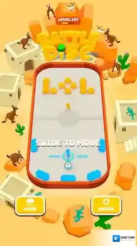 飞盘战斗(Battle Disc),也可以叫做战斗圆盘,是一款休闲有趣的魔性闯关小游戏。游戏的玩法设定有点类似冰球,我们需要在光滑的冰面上推动飞盘向对方直冲二区,成功攻破对手的防御即可获得胜利,完成关卡的挑战。并且随着挑战的进行,我们将会遇到更多强劲的对手,需要更加精准的扔出飞盘,用精湛的技艺击败对手!
