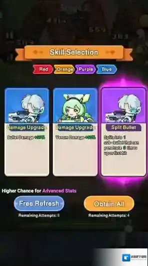 2、进入关卡后角色会自动攻击出现的敌人,当消灭某些部位后会获得技能强化或者获得新英雄。