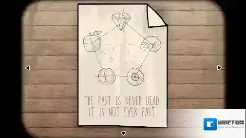 (1)、木桌视角:紧接前面的攻略,按照窗户上发现的(纸)的提示,将(蓝宝石)、(苹果)、(硬币)、(眼睛)、(贝壳)按对应的位置摆放好,形成了一个五角星阵。