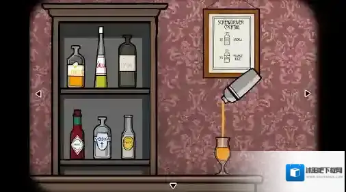 1、柜台视角:酒保乌鸦先生叫我们给坐在柜台边的鲍勃一杯酒,点击柜台上的调酒器,按照墙上的配方,分别点击伏特加和橙汁两次,点击两次调酒器后调出一杯(螺丝起子鸡尾酒),获得成就(螺丝刀),将酒交给鲍勃让他喝下后,他从嘴里吐出一把(螺丝刀);拿回鲍勃手里的(鸡尾酒杯),根据《生日》里从祖父上衣口袋里得到的配方,分别点击杜松子酒和汤尼水两次,点击两次调酒器后调出一杯(琴汤尼),获得成就(锈湖琴汤尼),将酒交给鲍勃让他喝下。