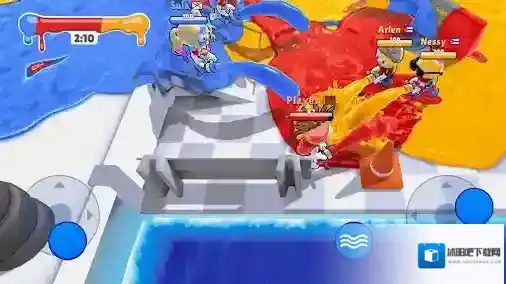 2、遭遇对手后即可用颜料攻击对手,并将区域染成你的颜色。