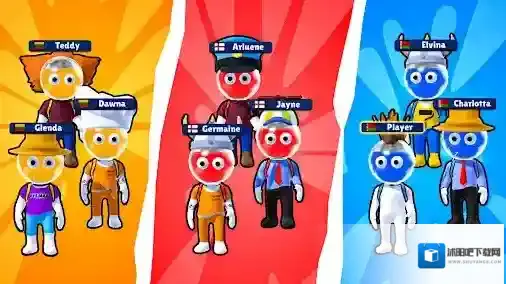 游戏中是采取3人小队的模式,共有 红、黄、蓝三队,每一支队伍都有着自己的领地,通过混战的方式不断增加自己的领地范围,争夺最终的胜利!除此之外,通过获得比赛奖励,我们可以去解锁更多武器和服装,为自己的角色自由的搭配!