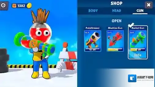 1、拿起染料枪,喷洒无限的染料!与您的队伍一同夺取敌方的哨塔及基地。将整片领地染上颜色,绝不可留白!