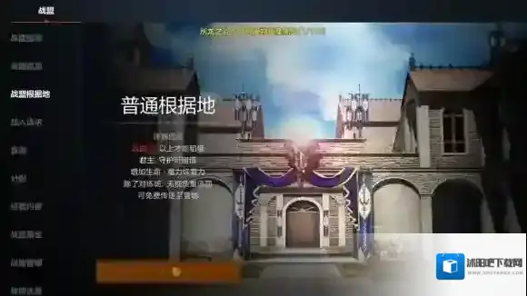 战盟等级达到3级后,战盟的君主以及守护者有资格购买战盟根据地!在战盟根据地中,成员回复生命以及魔力的速度更快。