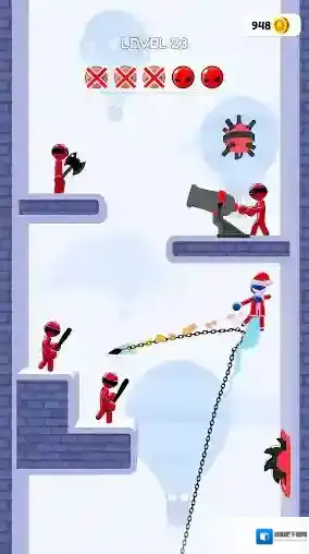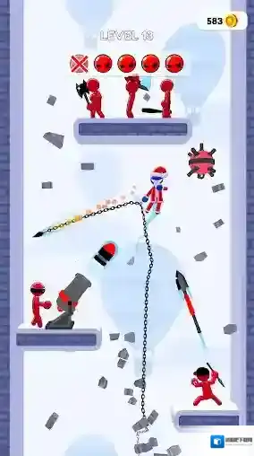 2、丰富多样的武器可以解锁使用,包括飞镖、斧子、回旋镖等等,强力的武器能够让你过关更加顺利。
