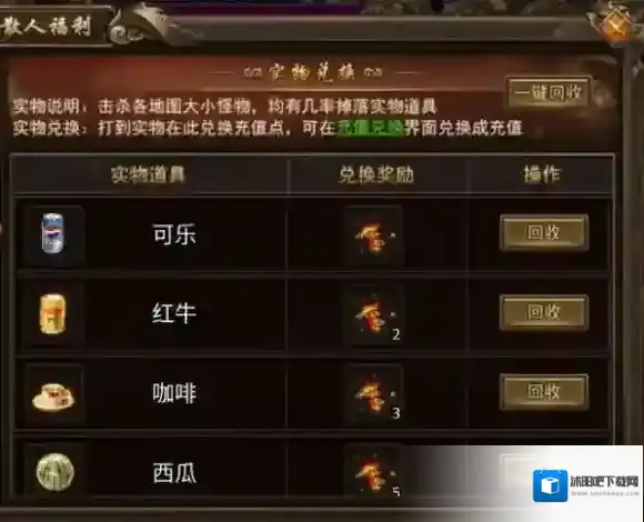 实物兑换:打到实物在此兑换充值点,可在充值兑换界面兑换成充值