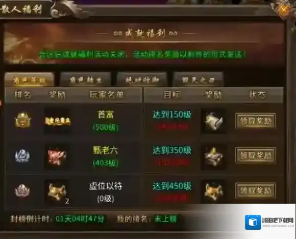 合区后成就福利活动关闭,活动排名奖励以邮件的形式发送!
