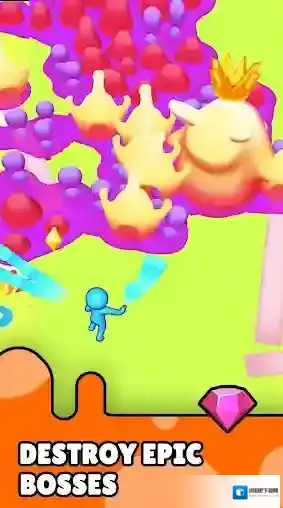 游戏中玩家扮演的角色将会来到一个被粘液包围的世界,你手中的净化枪是唯一克制它们的方法,需要通过不断的移动和射击将它们全部清除,从而解放一个又一个世界!过程中我们可以通过消灭粘液提升等级,随机学习各种技能来强化自己,帮助你更好的闯过关卡!