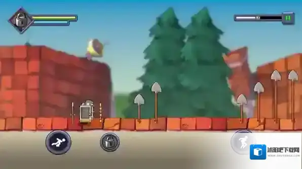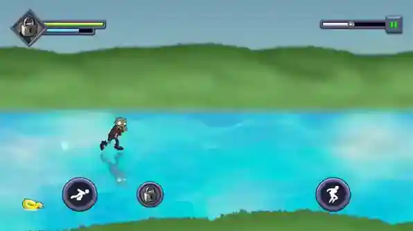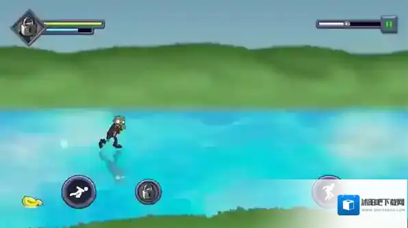 3、进入关卡后僵尸会自动前进,在屏幕左右的上下分别是跳跃和切换方向,有时向下的按键会变成冲刺。