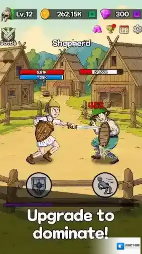 游戏中我们只需控制防御和攻击,通过对敌人攻击的准确判断来做出应对,让你以最小的损失、最快的时间来击败敌人,收获金币和经验奖励。并不断的升级、提升属性来强化自己,提高整体的战斗力,去尝试更多困难的挑战!