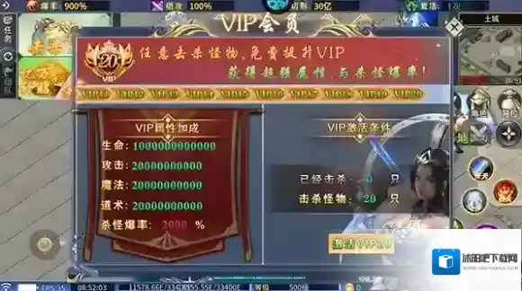 4、另外,游戏内的20级VIP会员只需击杀20只怪物就可以领取。