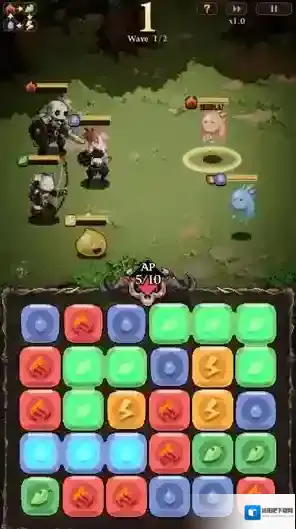 游戏中的战斗玩法以消除为主,玩家需要消除各种颜色的方块让角色释放不同的攻击,每一个方块对应一种元素属性。游戏中的伙伴都有不同的属性,消除这些方块就可以让他们进行战斗,消除的数量越多攻击的威力越高,不断消除各种方块来击败出现的魔物吧。