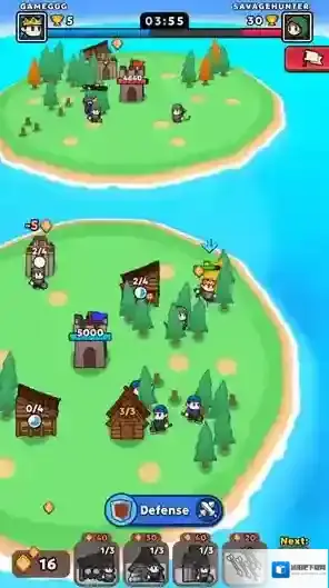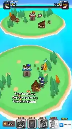 游戏中玩家需要放置不同的建筑来召唤小兵进行战斗,通过砍树收集资源来召唤不同的兵种,合理搭配你的兵种来完成不同的挑战,解决各种各样的敌人来获得不同的奖励,运用不同的计谋在战斗中获胜,不断获胜来成为最厉害的国王。