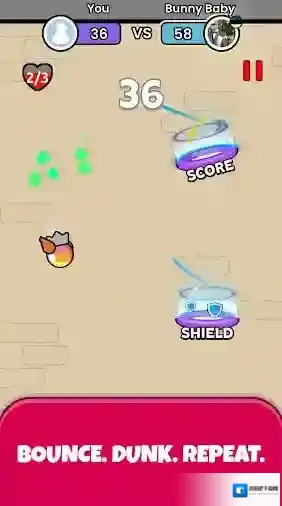 飞天扣篮(Flappy Dunk),是由知名厂商VOODOO所自主研发的一款休闲小游戏。以篮球为主题,通过不断的点击让篮球进行飞跃,让它们能够顺利的进入篮筐中,从而获得分数。如果能够完美的通过篮筐,即可获得多倍分数的加成,帮助你获得更高的分数,获得更高的奖励!除此之外,可以通过不断的挑战来解锁各式各样的篮球皮肤,让挑战过程更加的丰富有趣!