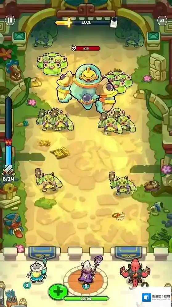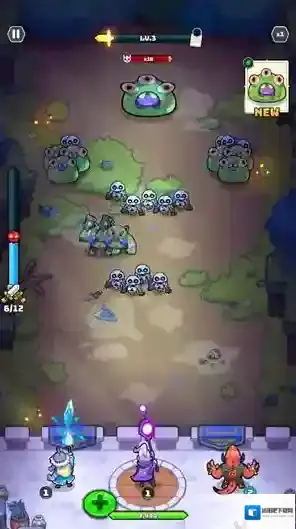 3、消灭怪物会获得经验值,提升等级后玩家可以选择召唤新英雄或者选择一个强化提升英雄的能力。