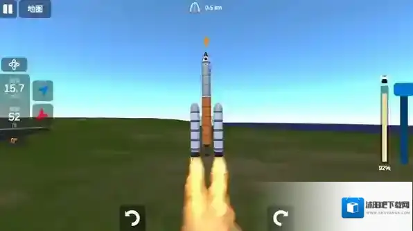 6、正式开始后点击右下角的按钮可以点燃不同的推进器,右边的蓝色按钮是调整推进器的功率大小。