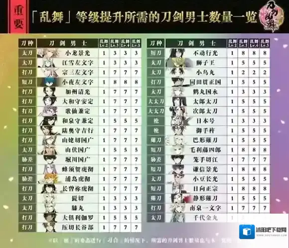 「乱舞」等级提升所需的刀剑男士数量