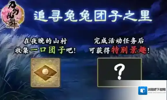 审神者在出阵时偶尔会发现兔子的踪迹,通过击败敌人、追寻兔兔或击破BOSS,有几率获得活动道具一口团子。对刀剑男士使用一口团子,能够大幅恢复一位刀剑男士的疲劳度,并听到全新的特别语音;完成活动任务对刀剑男士使用50个一口团子后,可以获得中秋特别景趣。
