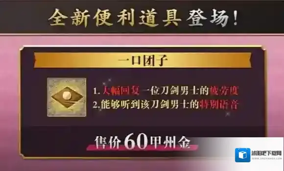本次活动结束后,仍可在万屋购买一口团子,依旧可以使用道具一口团子恢复刀剑男士疲劳值,并听到特殊语音。