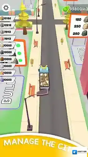 2、玩家可以驾驶载着石头的车辆在城市中穿行,在建造整个城市的同时建造建筑物并开辟新的区域。