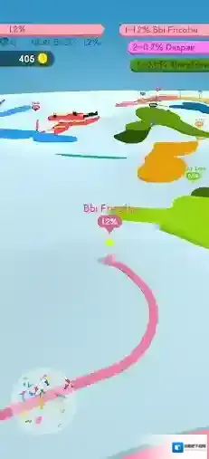 2、通过灵活的走位和策略的操作来圈出更大的领地,不断扩展你的颜色,赢下比赛获得丰富奖励。
