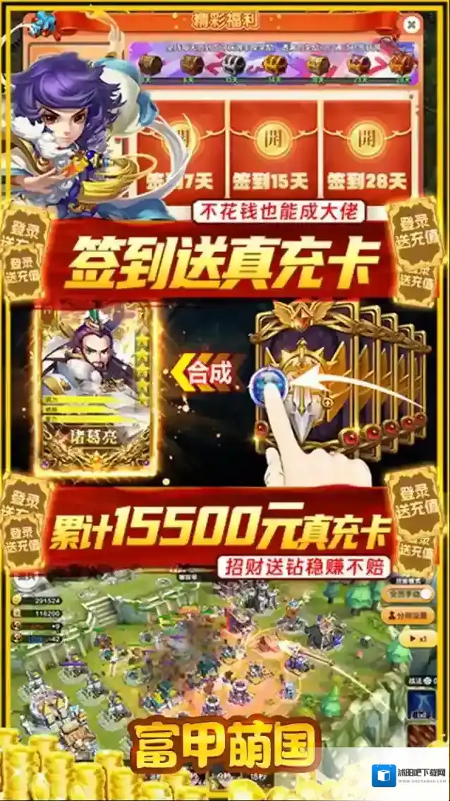 富甲萌国(科技特权真充)是一款集养成于策略一体的三国卡牌游戏。上线送神级武将,海量材料免费拿, 通过对自身武将的培养,宝石、装备等一系列增加战斗力物品的收集,在不同势力的对战中可以通过武将、 兵种、团队配合进行战斗,充分发挥大家的谋策战略,拥有不一样的游戏体验。从而逐渐成长为一位可以 影响大局的存在,一统三国指日可待。