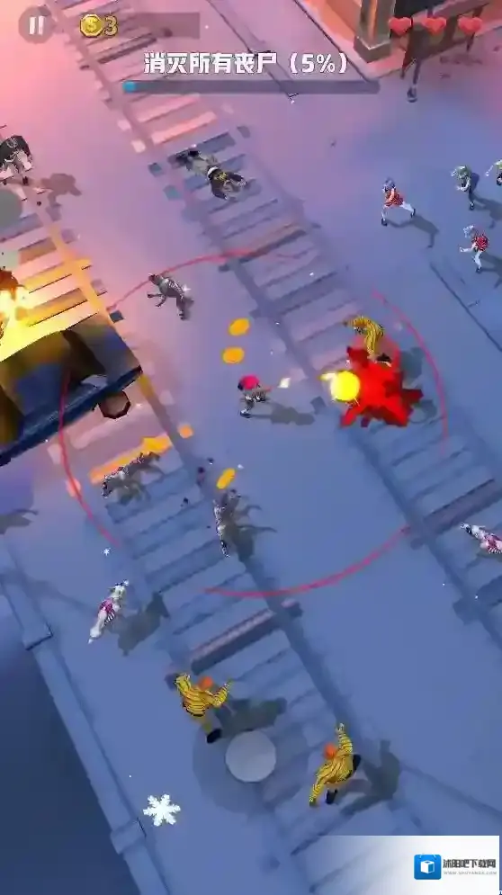游戏中的玩法比较简单,玩家只用操控角色移动就可以,角色会自动消灭进入范围的敌人,但是不要大意了,即时可以消灭进入范围的敌人,但是一次进入太多敌人也是会受到伤害的,灵活移动躲避这些僵尸,不断战斗在这个末日世界里生存下去。