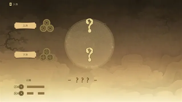 1.首先需要抽取卦象,卦象是决定我们这局游戏运营的关键,其中有牌型加强、增加宝钱收入等等强化。