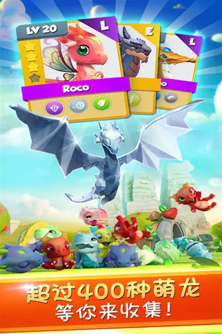 3、海量的巨龙可以进行抚养并且每个巨龙都拥有不同的属性技能,利用各种资源可以升级巨龙的实力以及 其他加成。