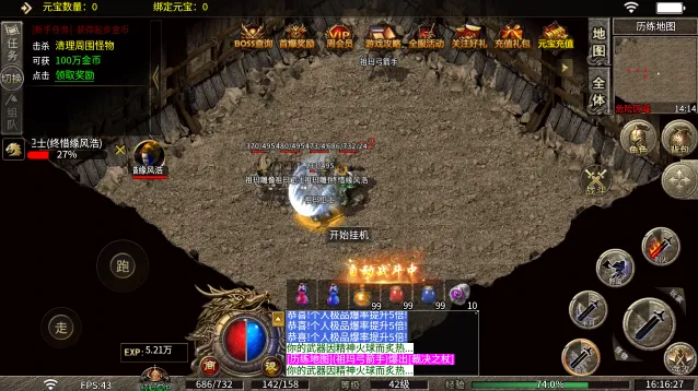3、SS级BOSS:HP=12.8万,刷新时间90分钟,可爆出顶级装备。