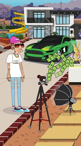 游戏中我们需要通过不断的点击为自己积累财富,然后提升自己的财产、装备、服装和能力,以此来提升点击所获取的财富,并且随着等级的提升你的服饰、房子、车子、设备等物品都会随之更新,一步步的实现逆袭,让自己从一个无名小卒,摇身一变成为富有影响力的超级巨星!