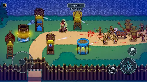 兼顾宏观与微观的策略深度:在宏观上,你需要规划整个村庄的布局和经济链条(如伐木场→兵营)。在微观上,夜晚的每一波防守都需要你精准放置士兵、升级防御塔,甚至手动控制英雄释放技能,策略维度丰富。