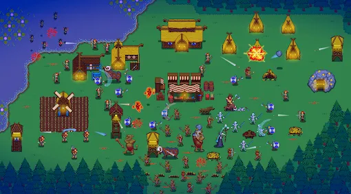 维京英雄是一款 在昼夜循环中紧密结合的像素风游戏。你扮演一位维京部落首领,在清晰的昼夜节奏中完成两项核心任务,白天,像一个即时战略游戏,你需要指挥村民收集资源、建造并升级各类建筑,为防御做准备。夜晚,则切换至塔防模式,你需要合理部署白天训练出的士兵和建造的防御塔,抵御如潮水般袭来的怪物。