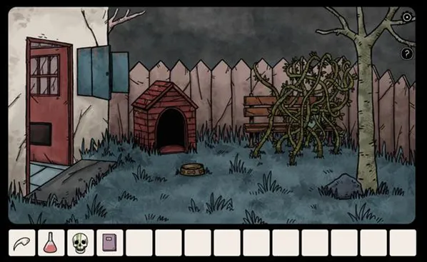 4、在后院拿走树根处的铁铲,然后到车库用其打开架子上的颜料罐拿到钥匙。