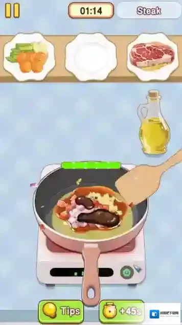 2、丰富多样的关卡等着你来挑战,每一关都是一道特色美食,学握烹饪时机,烹制金黄酥脆的美食。