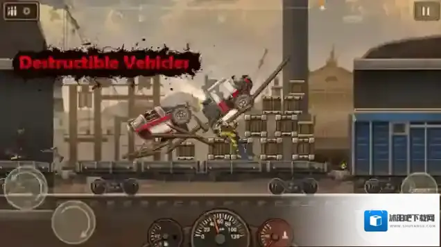2、在行进过程中,你将会遇到众多拦路的僵尸,可以为你的战车配置武器进行攻击,也可以用最粗暴的撞击消灭它们。