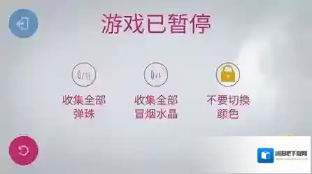5、在游戏过程中,尽量收集全部冒烟的水晶和弹珠,如需暂停或退出当前游戏,可以点击暂停按钮或左上角的退出按钮。