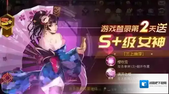 1、游戏登录第二天送超强S+女神。