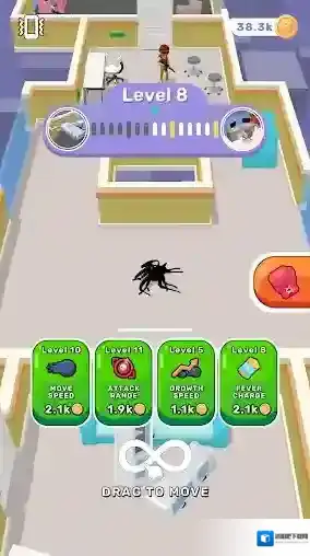 1、进入游戏,拖动屏幕即可控制毒液移动,靠近猎物之后就可以将其吞噬。