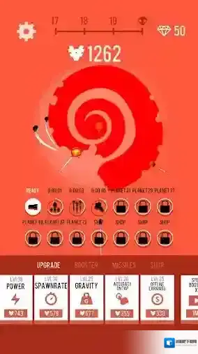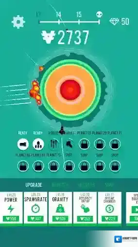3、每一次几种星球都会获得金币,可以用来升级自己的各项属性。
