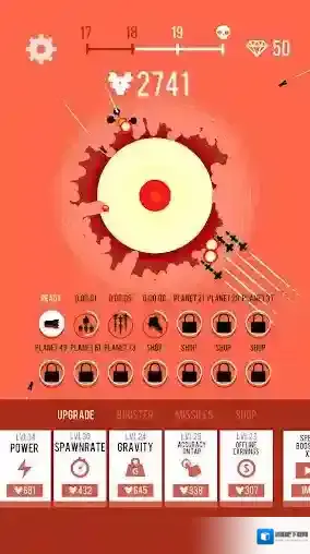 星球轰炸(Planet Bomber!),能够带给你畅快解压体验的一款休闲小游戏,出自知名游戏厂商VOODOO之手,秉承他们家一贯的风格,不仅画面简洁清新,好玩伐也是相当的休闲解压,游玩体验非常棒!在游戏中,玩家们将会享受用火箭弹轰炸星球的快乐,通过升级火箭弹的力量、重力、速度等属性来提升轰炸效率,也可以使用各种更为强大的炮弹来加以辅助,更快的去摧毁一个又一个的星系!