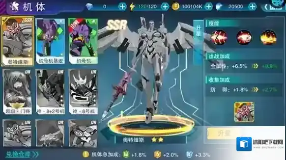 1、玩家可在游戏内的机体仓库中查看已拥有的机甲并完成养成操作。