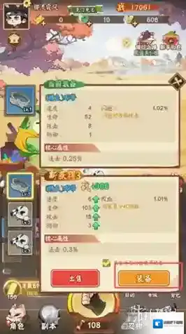 3、反之,若装备品质较低,则点击出售按钮将其出售,出售装备后可获得物资。