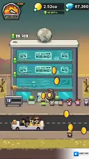 3、雇佣各种独特的自动矿工,自动化你的点击过程,还能不断的升级这些矿工,提高整体的采矿效率。