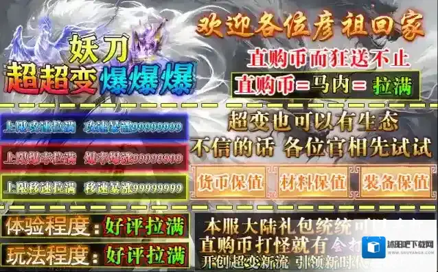 妖刀超超变爆爆爆,195神器高爆单职业版本,零氪到底,白嫖到终极!上线攻速、爆率、移速直接拉满,打怪就能赚取直购币,可以兑换礼包,时间证明一切!本服所有大陆礼包统统可以靠打获得,并且货币、材料和装备全部都很保值,支持玩家之间自由交易,绝对的生态大服!来这里天天领充值,免费轻松过关,白嫖即可到终极,绝对让你玩的爽爽爽!