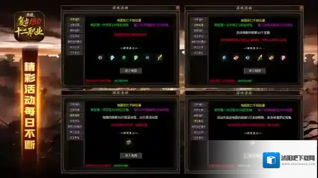 圣壕复古多职业,经典180复古三职业特色版本,在经典的战、法、道三大职业基础上,为每一个职业细分了四个流派,玩法丰富多样,体验起来各有千秋!游戏内所有的装备、道具都可以通过打怪获取,前期的地图中也能够掉落各种等级装备!每日还有各种精彩的活动不断,丰富的福利领不停,更有超多装备可以任意搭配,玩法琳琅满目!
